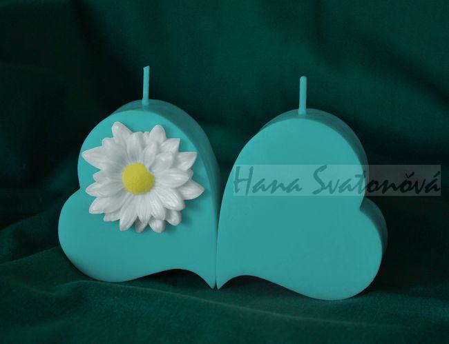 - 2 srdce A s kopretinou - výška 6,5cm