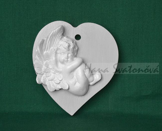 - Relief Andělíček s vysokými křdli, na srdíčku, vel. 6,5x7cm