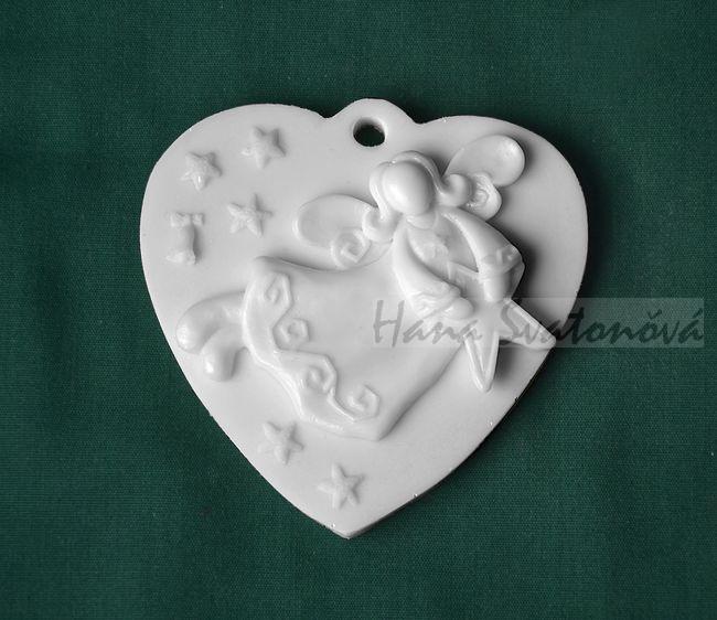 - Relief srdce závěs, Andělíček s hvězdičkou - 8,5x8,5cm
